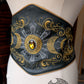 It is made of soft garment leather and is fully embroidered with a beautiful pattern. The fastening system is made of eyelets, so it is really comfortable and adjustable.